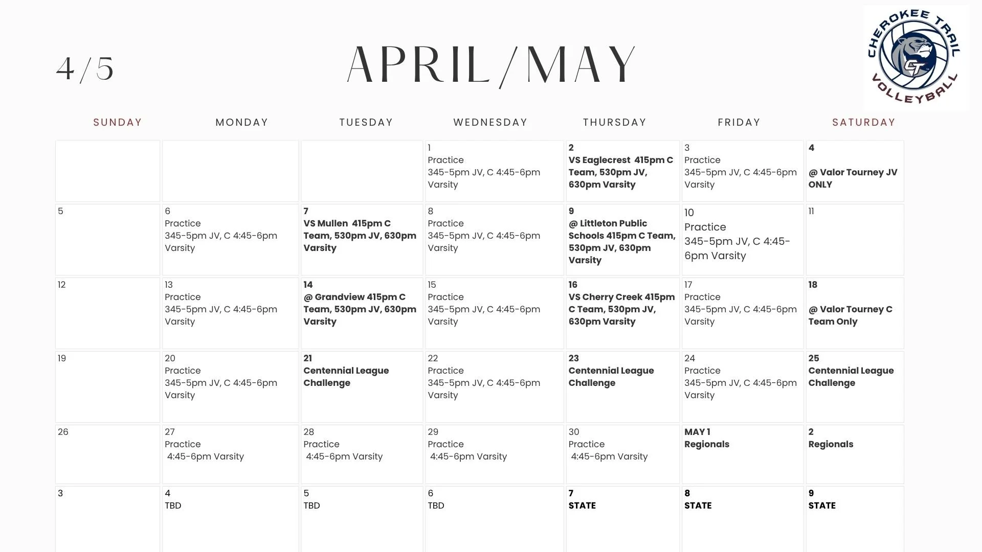 2026 season schedule Check here for most accurate schedule updates: CENTENNIAL LEAGUE WEBSITE (SCHEDULE)